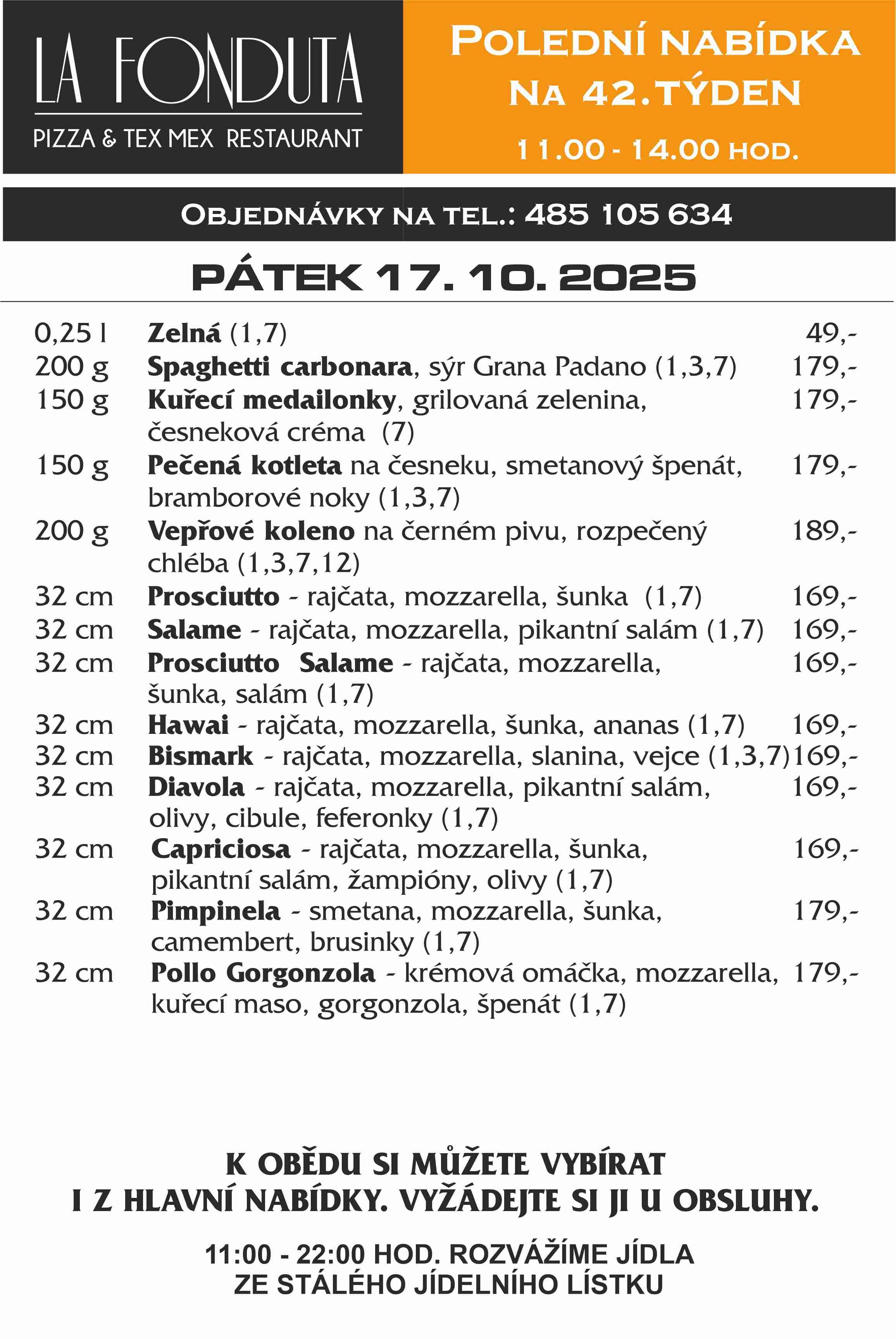 Doba oběda přináší polední nabídku, kde můžete ochutnat jídla z české, italské ale třeba i pokrmy mexické, španělské a americké kuchyně.